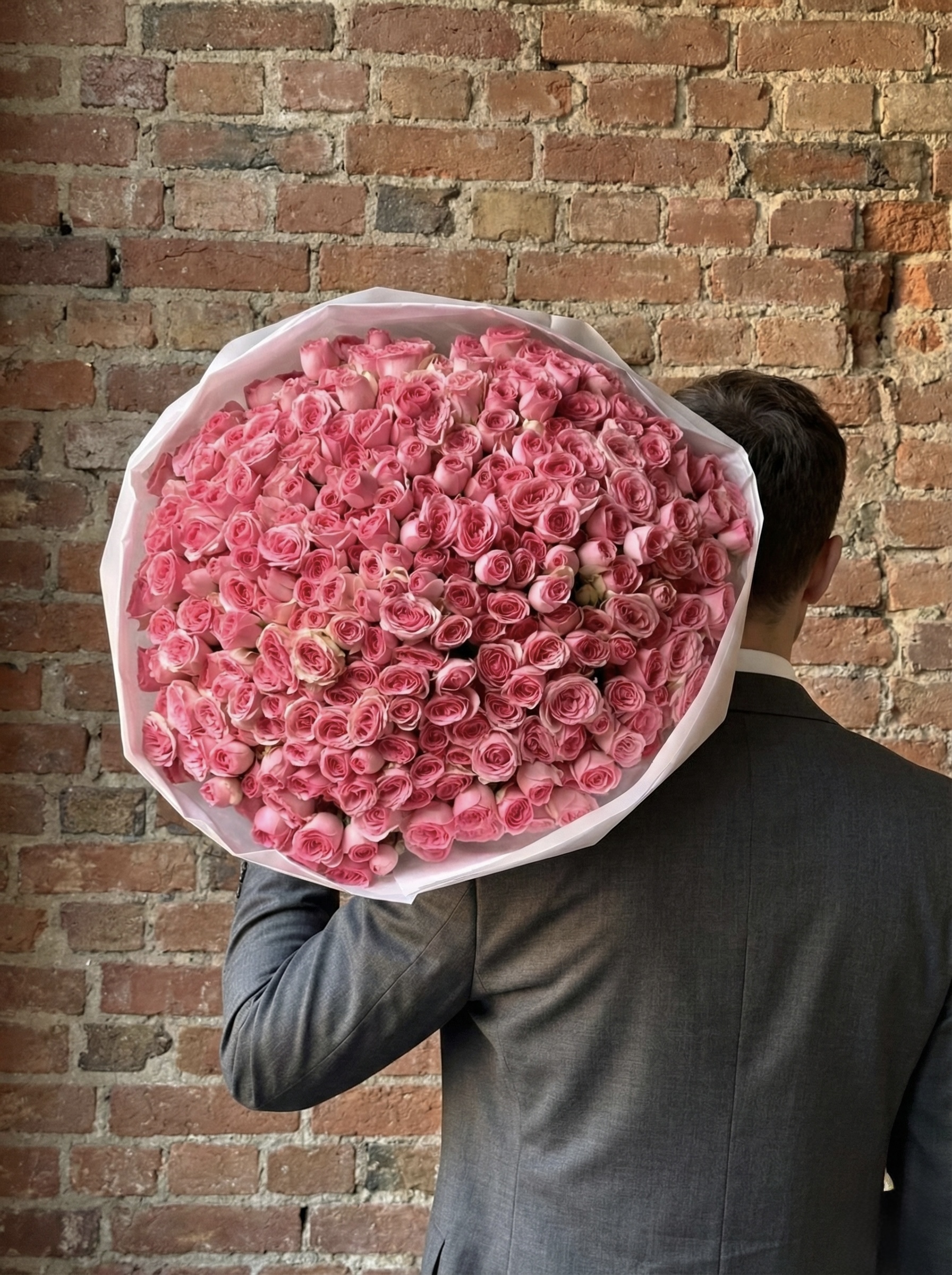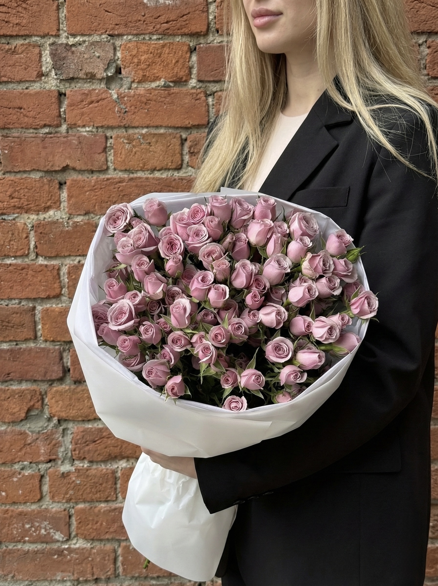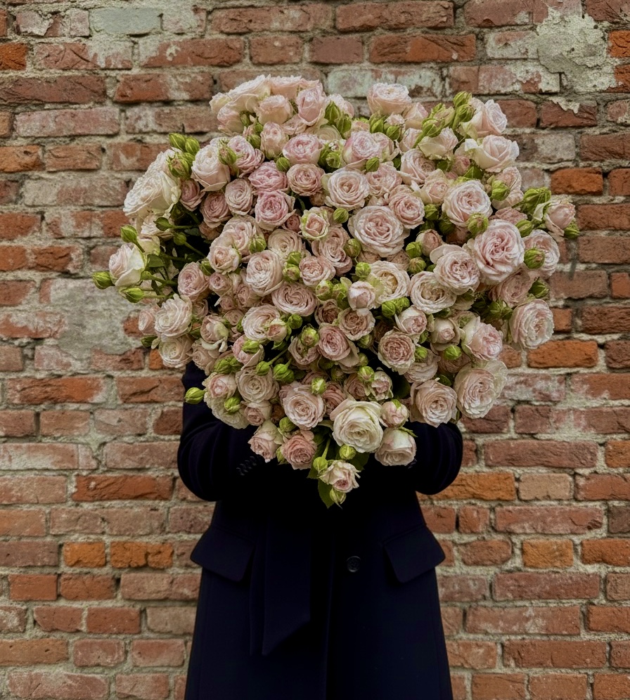 An emphasis on emotion and mystery. Give a gift straight out of a fairy tale. An exceptionally feminine and refined bouquet of pink spray roses.