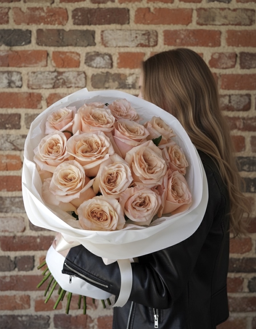 Elegancki bukiet róż, który urzekająco łączy odcienie kości słoniowej, jasnej kawy i stonowanego różu. Ich złożona, herbaciana barwa tworzy prawdziwie szlachetny efekt. Ten bukiet to symbol wyrafinowanego smaku i najdelikatniejszy komplement.
