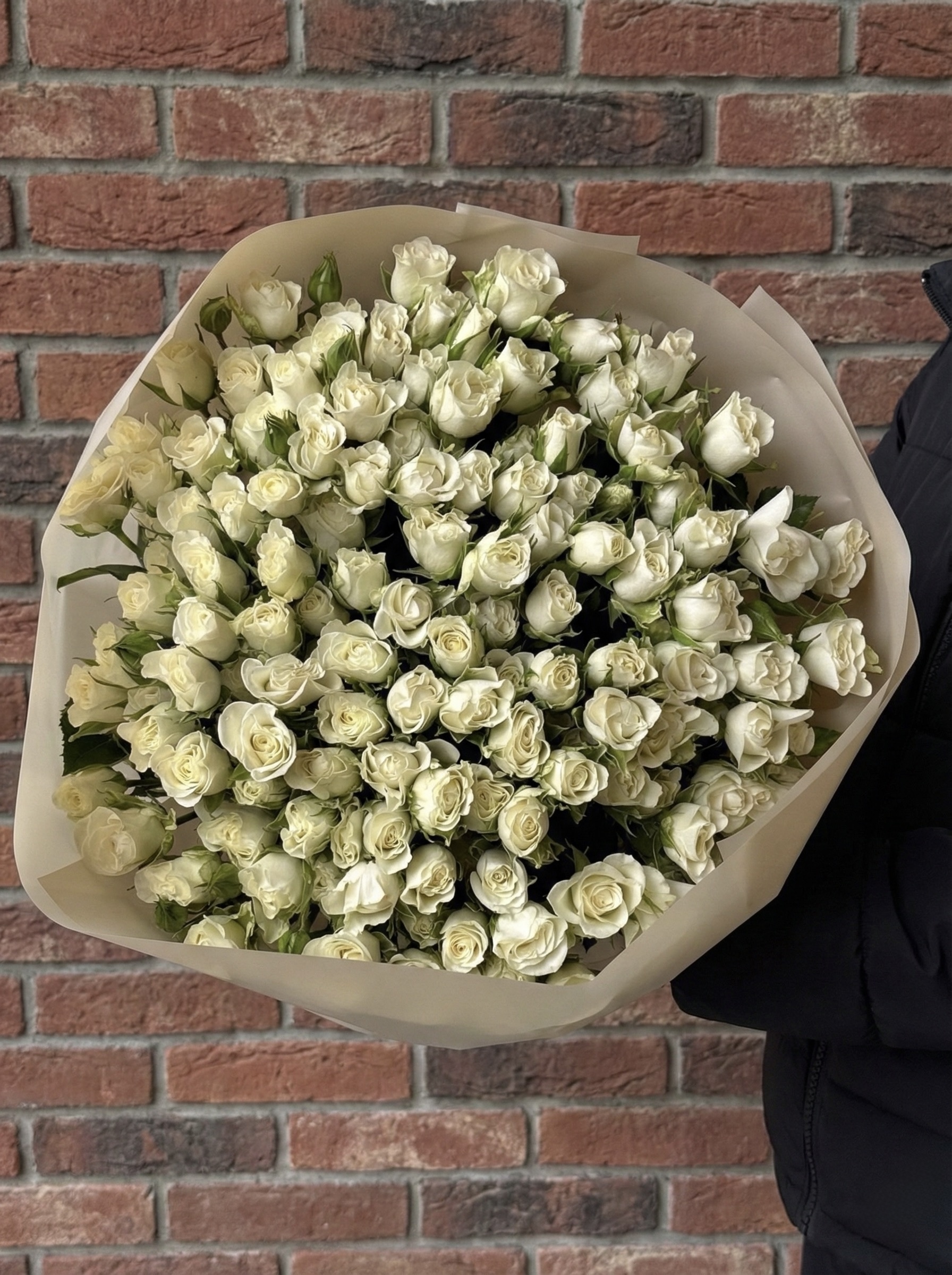 Ten bukiet symbolizuje najczystsze i najjaśniejsze intencje. Ogromny naręcz śnieżnobiałych róż przypomina lekką wiosenną chmurę.