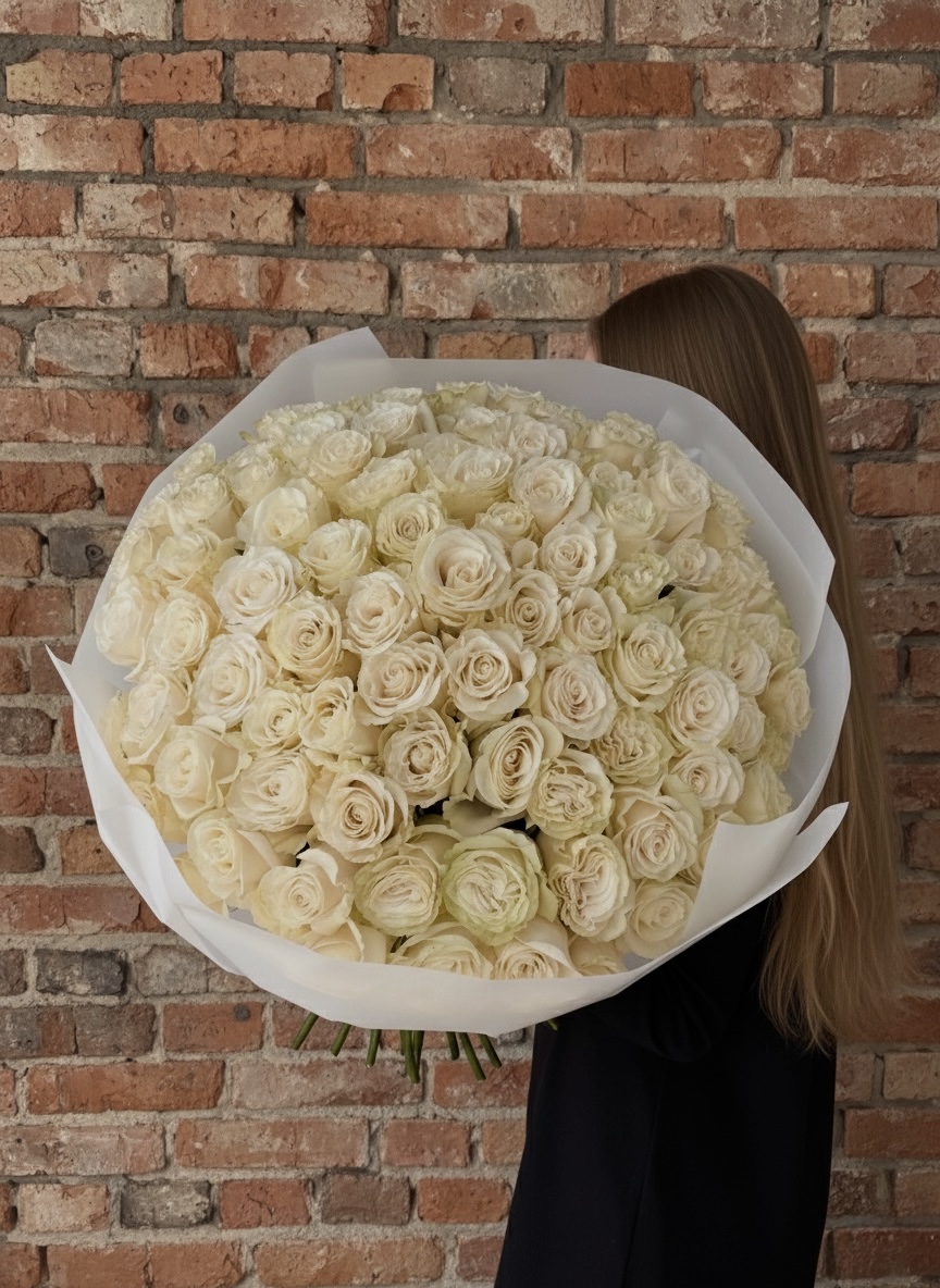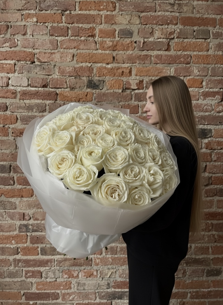 Monobukiet z białych róż jednogłowych